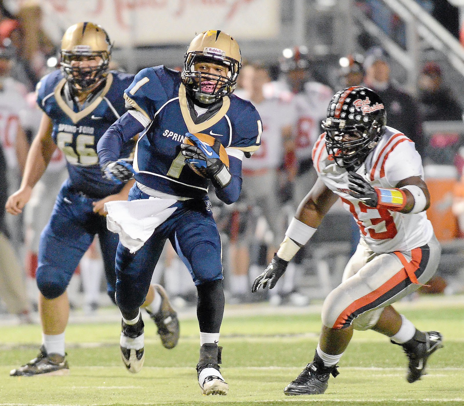 | Coatesville running back Daquan Worley avoids a group of Spring-Ford tacklers on a carry Friday. (Tom Kelly IV/JRC) |